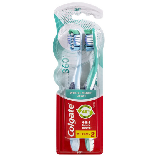 Colgate Toothbrush 360 Soft 2Pk Assorted Colours