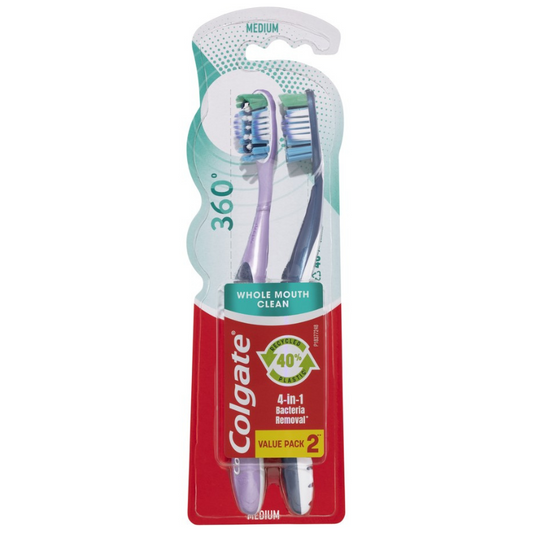 Colgate Toothbrush 360 Medium 2Pk Assorted Colours