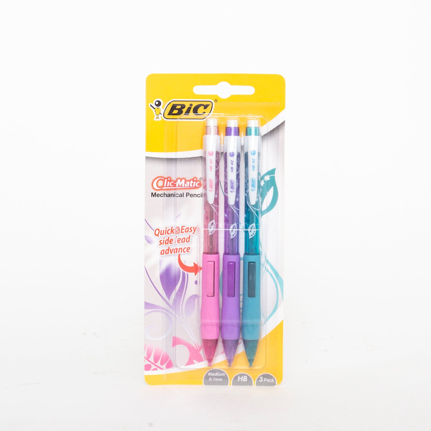 Bic Clic-Matic Mechanical Pencils 0.7mm HB 3 Pack Floral Set