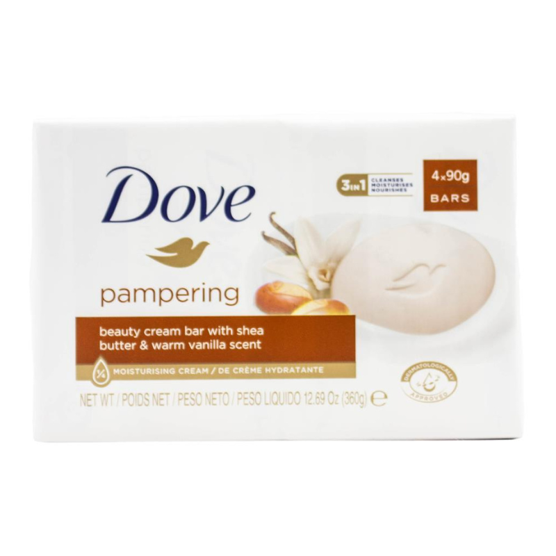 Dove Pampering Beauty Cream Bar With Shea Butter & Warm Vanilla Scent 4 x 90g Bars
