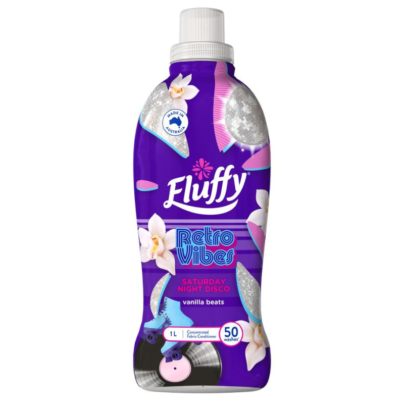 Fluffy Retro Vibes Saturday Night Disco Vanilla Beats Concentrated Fabric Conditioner 1L