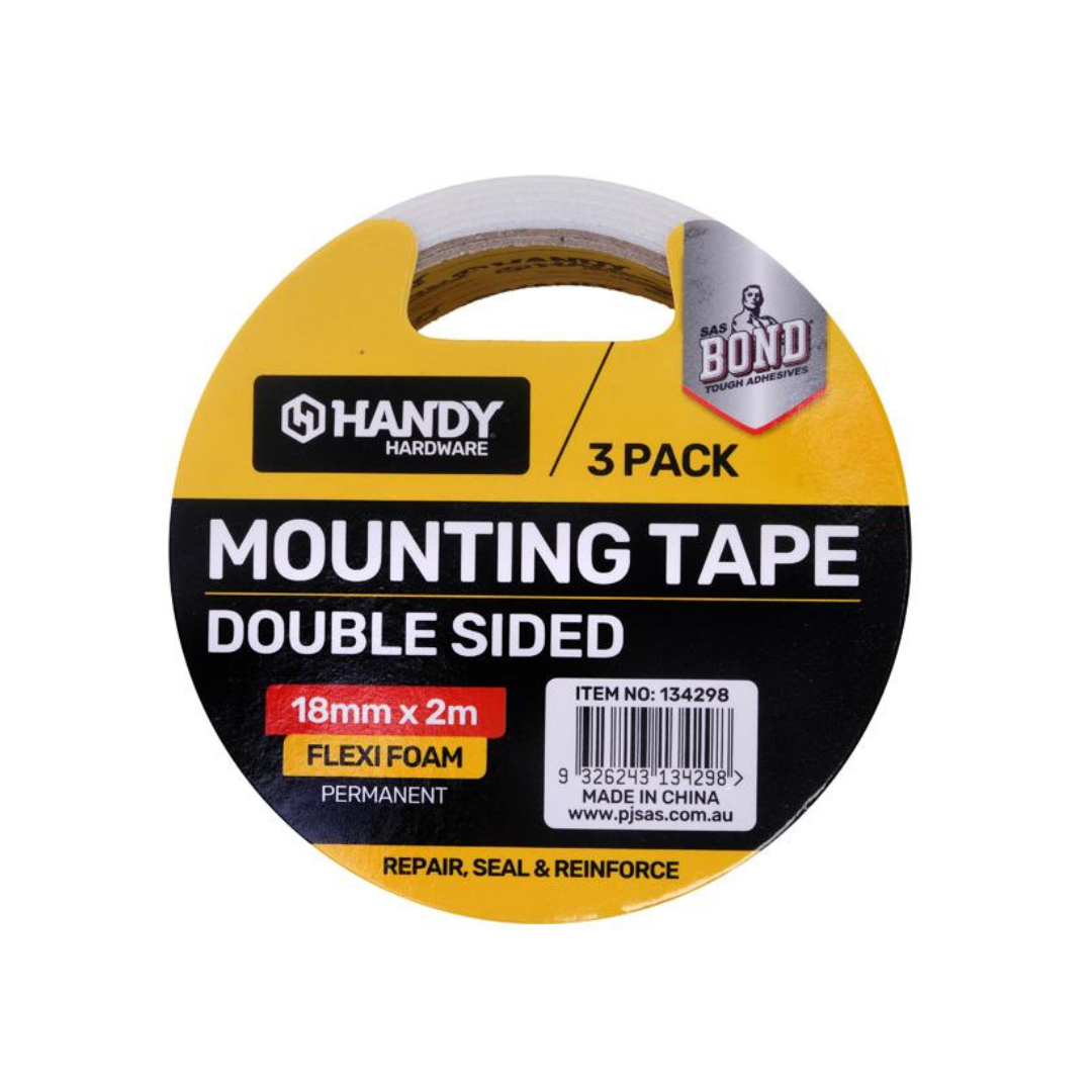 Handy Hardware Mounting Tape Double Sided 18mm x 2m Flexi Foam 3Pack