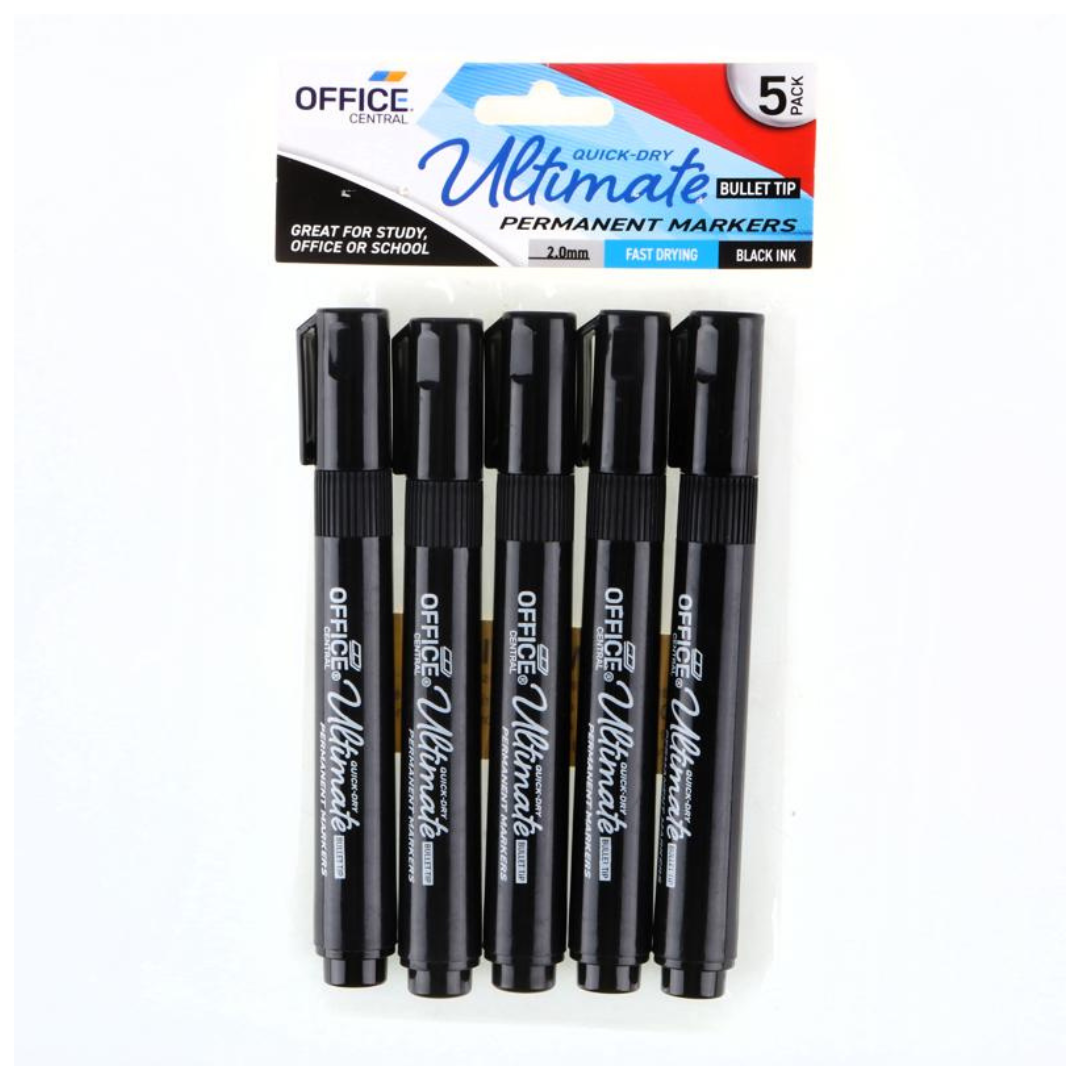 Office Central Permanent Marker Black Ink 5 Pack