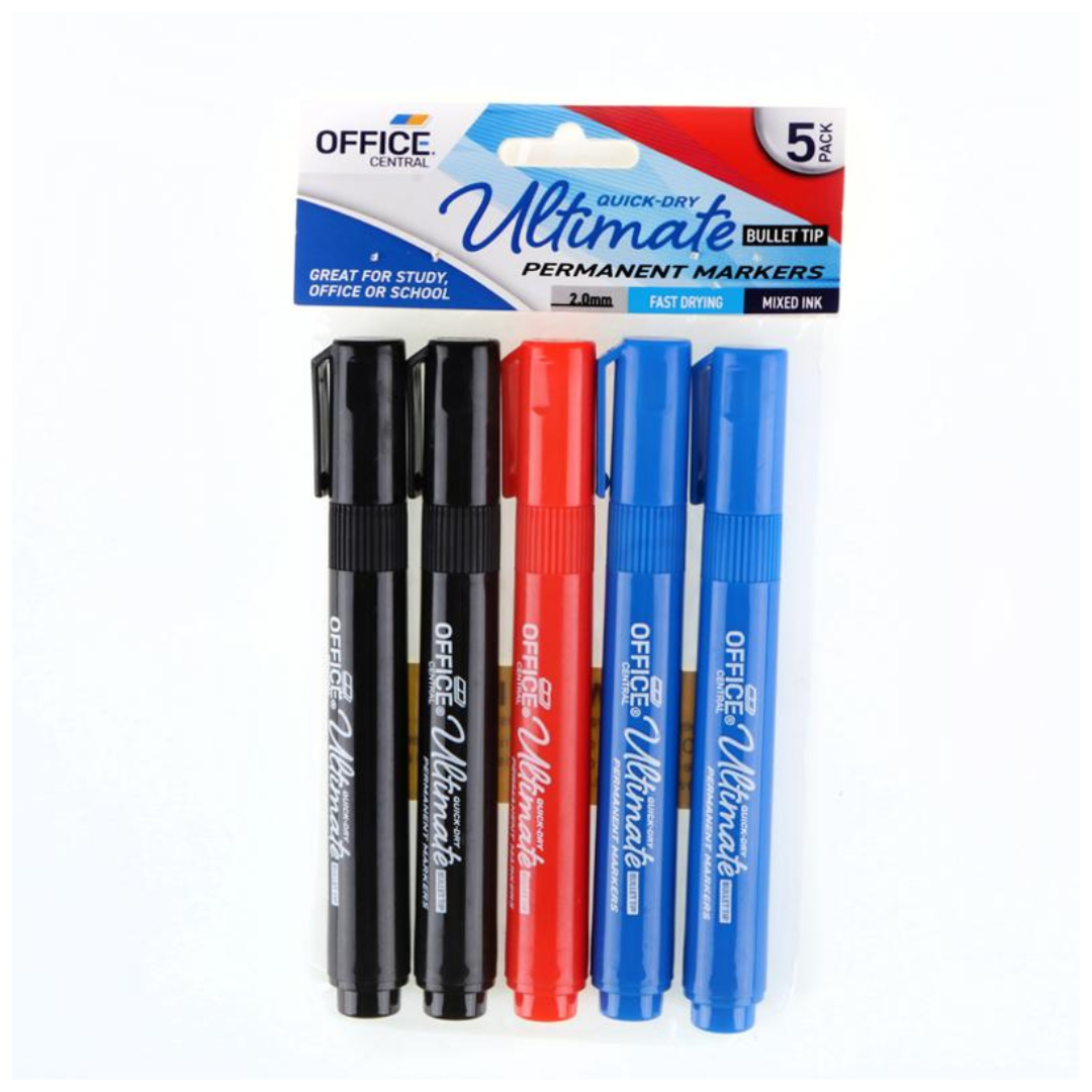 Office Central Permanent Marker Mixed Ink 5 Pack